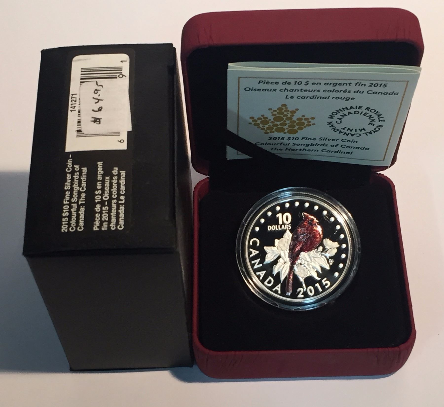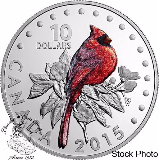 Canada 2015 $10 Colourful Songbirds of Canada: The Northern Cardinal Silver Coin