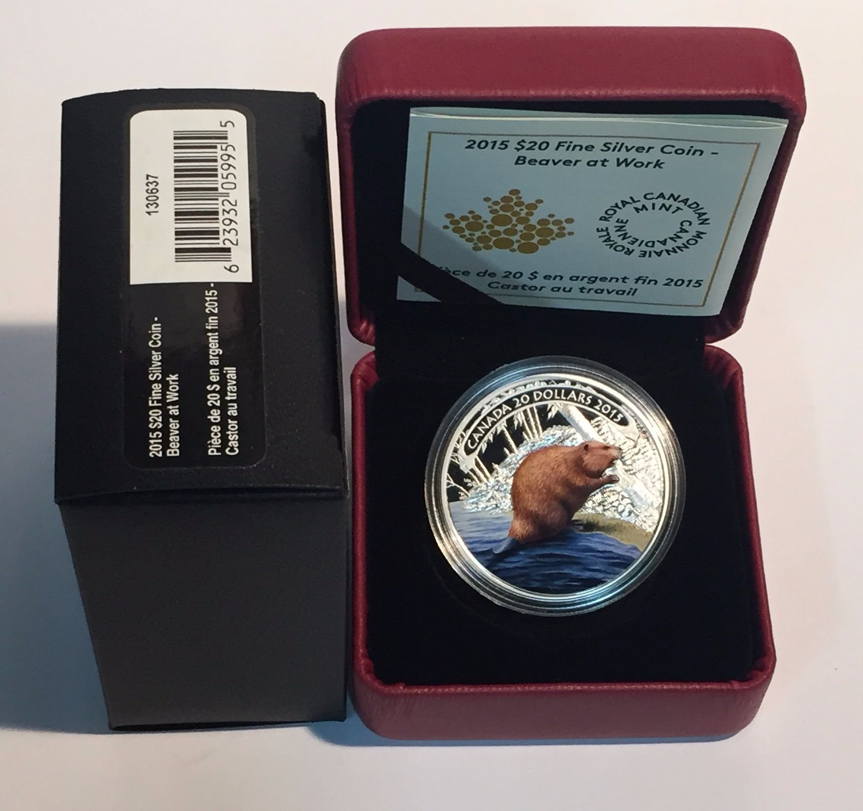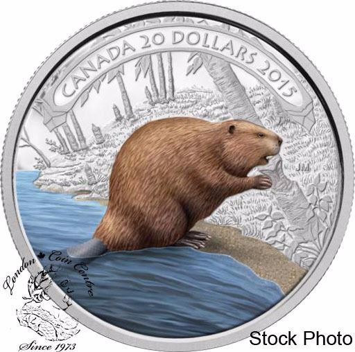 Canada 2015 $20 Beaver at Work Coloured Silver Coin