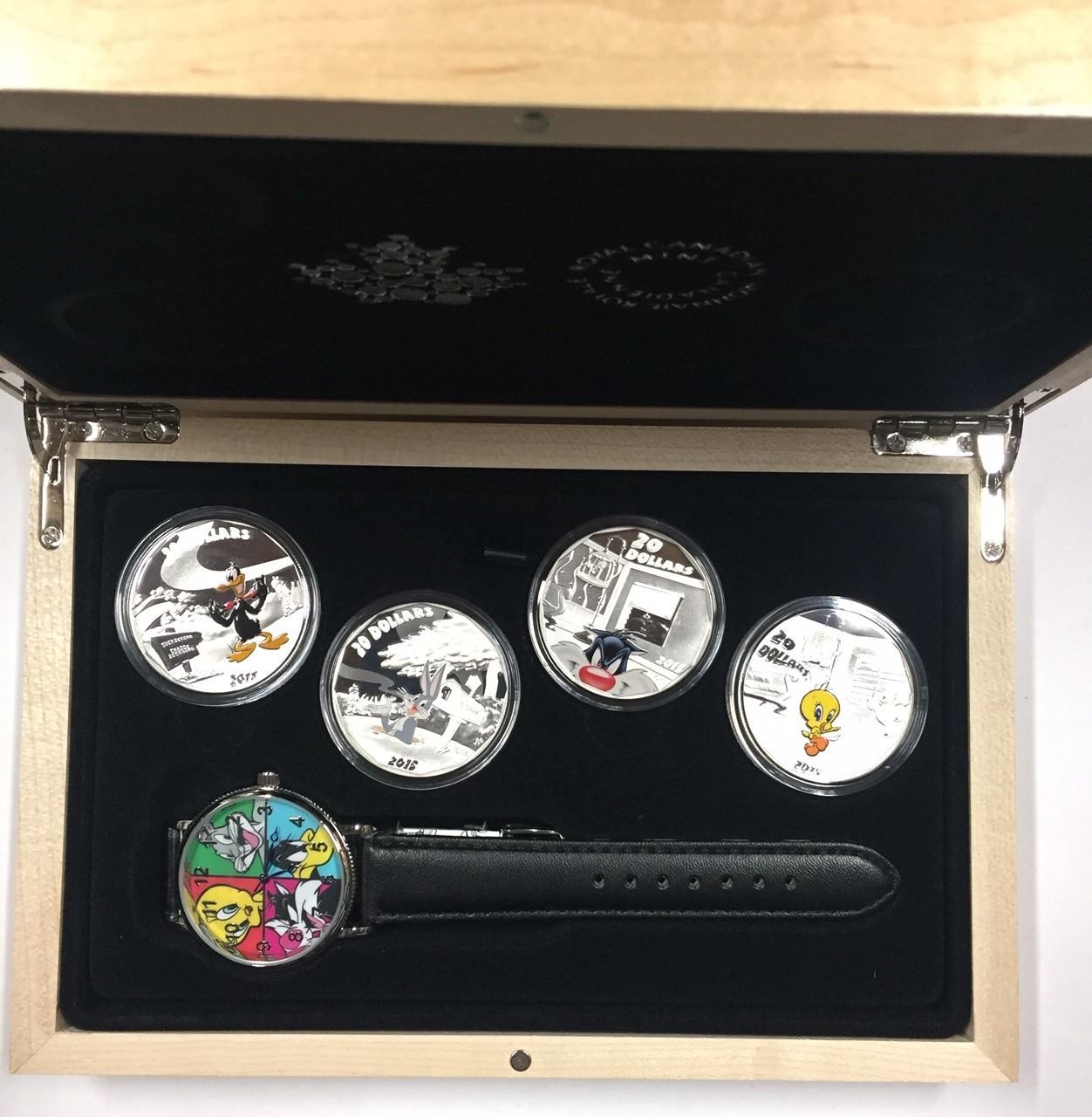 Canada 2015 $20 Fine Silver 4-Coin Set Looney Tunes. Includes watch.