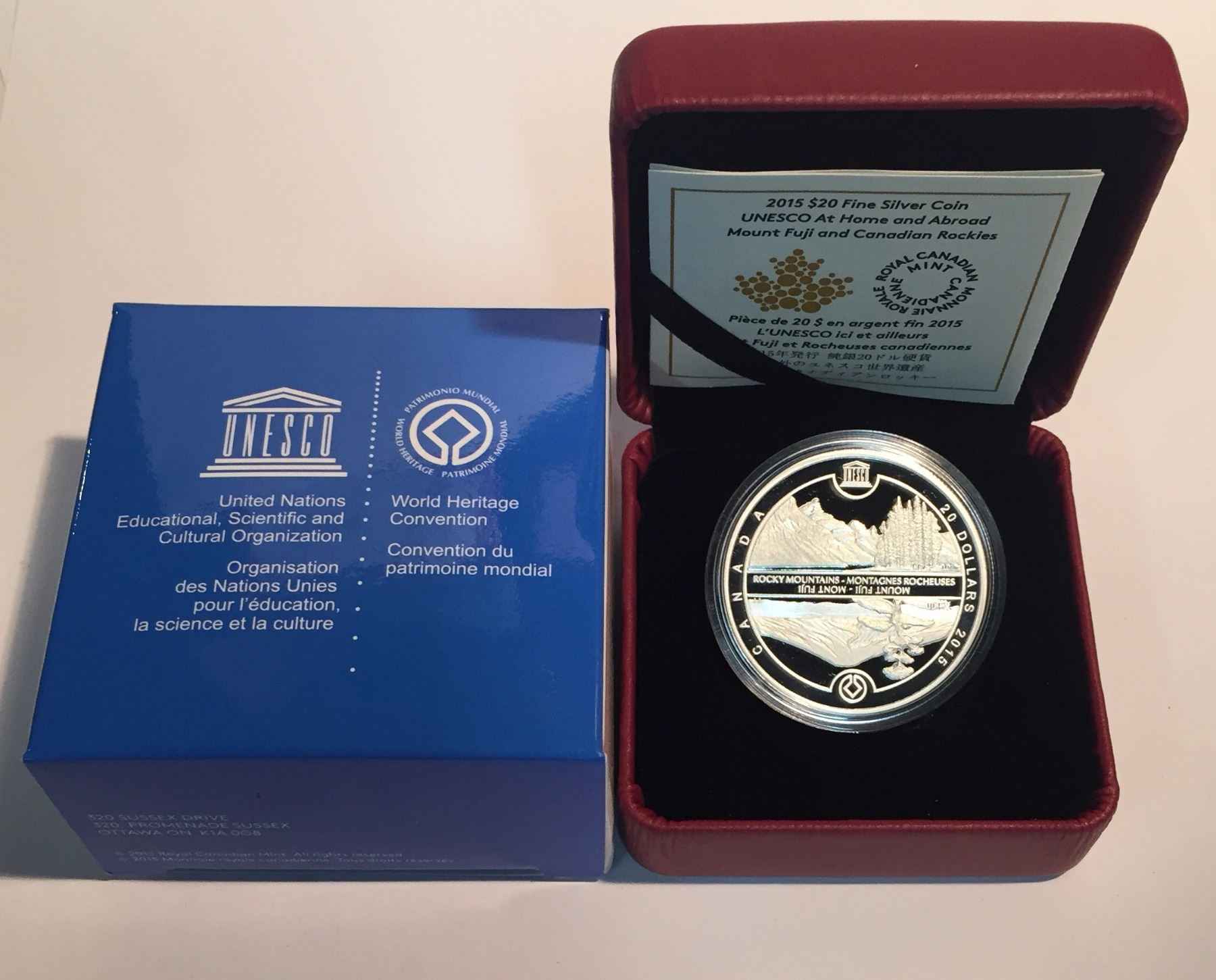 Canada 2015 $20 UNESCO at Home and Abroad: Mount Fuji and The Canadian Rockies Silver Coin