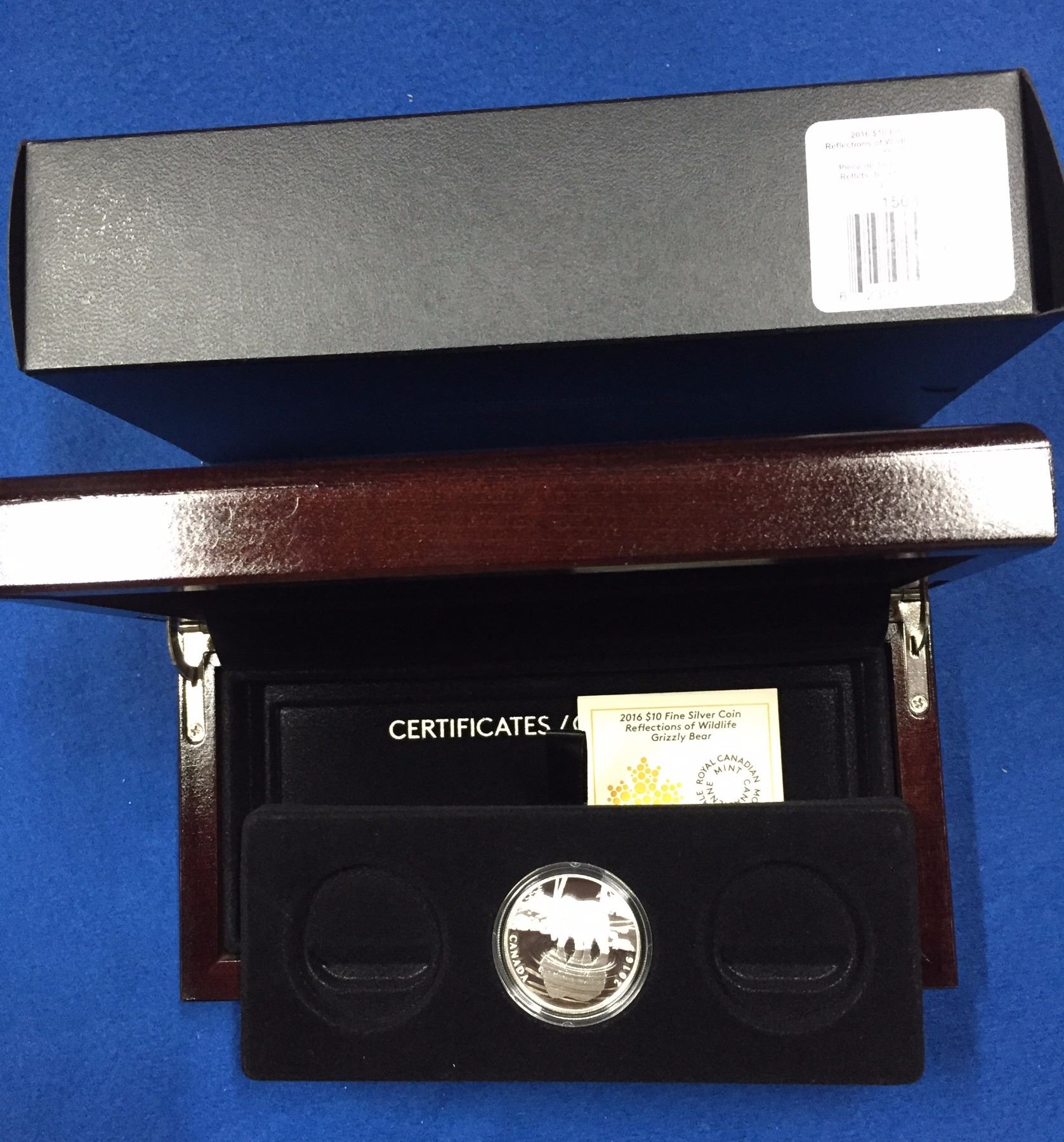 Canada 2016 $10 Reflections of Wildlife Grizzly Bear Silver Coin in Big Box for 3 Coins. In big box with room for 2 more coins.