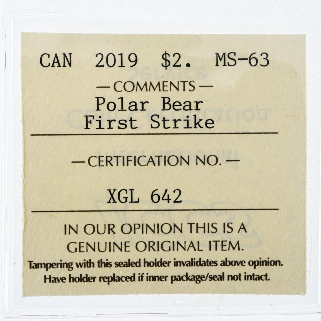 Canada 2019 $2 Coin First Strike Polar Bear ICCS