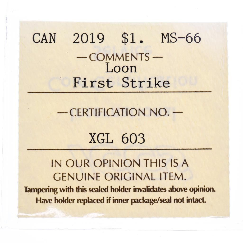Canada 2019 Loon Dollar Coin First Strike MS66 ICCS - - COIN~318