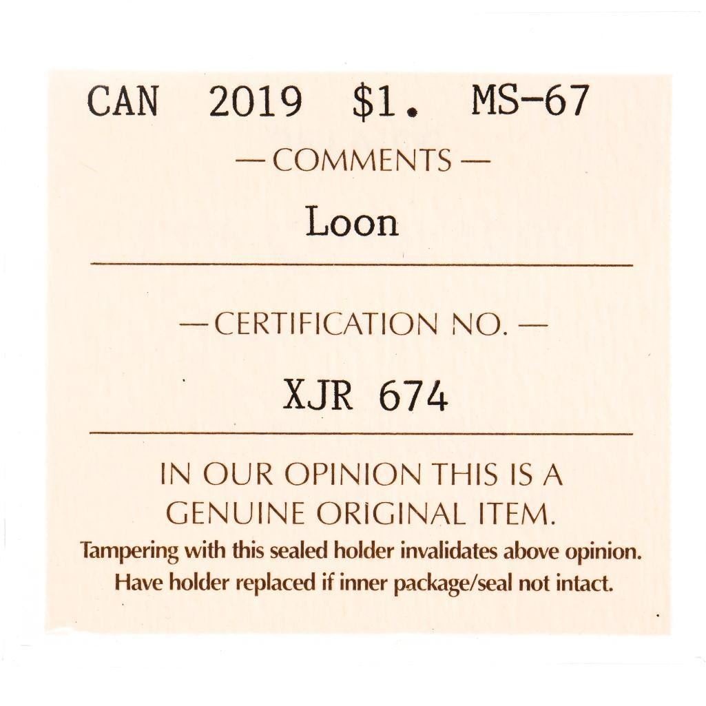 Canada 2019 Loon Dollar MS67 ICCS - - COIN~235