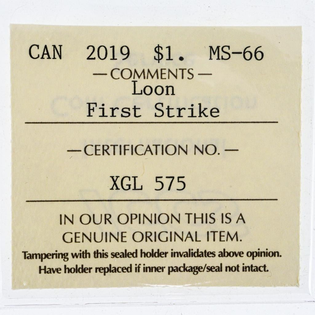 Canada 2019 RCM $1 Coin - First Strike Loon MS66 ICCS
