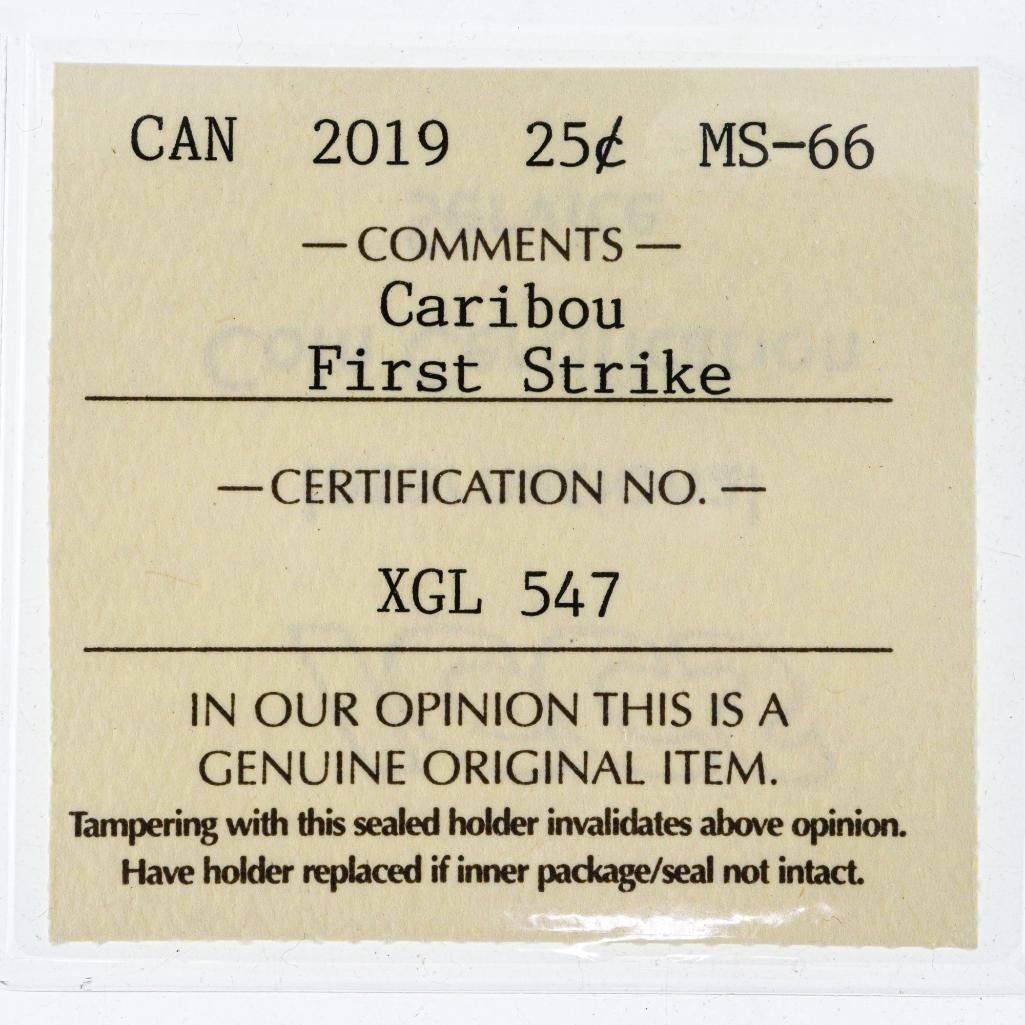 Canada 2019 RCM First Strike Caribou Twenty Five Cent Coin MS66