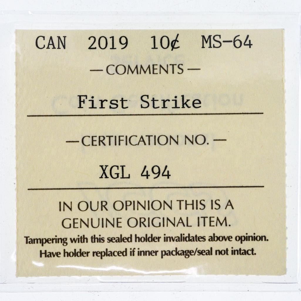 Canada 2019 RCM First Strike Ten Cent Coin MS64