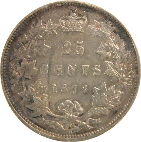 Canada Twenty-Five Cents 1872H Obverse 2 ICCS VF-30. Toned