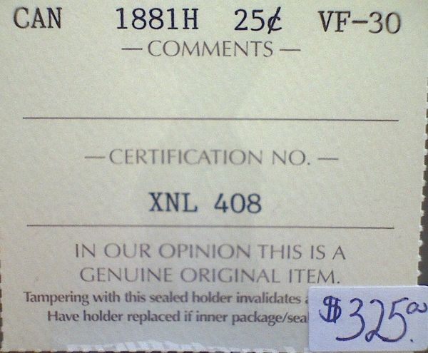 Canada - 25 Cents - 1881H - ICCS - VF-30