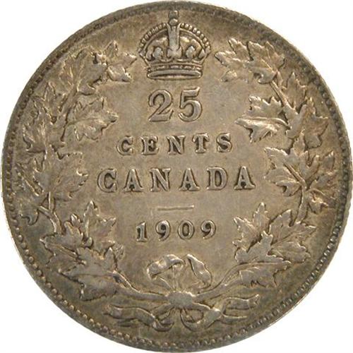 Canada Twenty-Five Cents 1909 ICCS VF-30. Light-medium toning