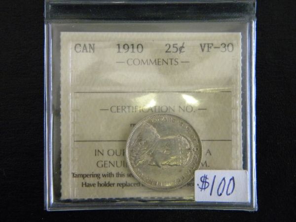 If there are no bids before the auction begins, lots will start at the reserve bid. 75% of all items in this auction will have reserve bids of 50% Canadian Coin News Trends price. Advances are at the discretion of the auctioneer. In the event of identical bids, pre-viewing bids, phone or e-mail bids will take priority. We reserve the right to withdraw any lot prior to the sale. Lots are sold to the highest bidder at timed bids indicated on our auction page through iCollector. No lots will be broken. This is not a Live Public Auction and hence there is no public forum. The auction will be conducted via the internet only, from our physical location at 230 Main Street, Fredericton, New Brunswick, E3A 1C9 on the May 18th, 2013.