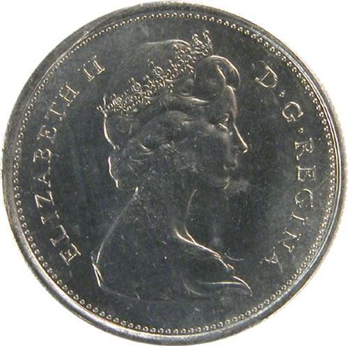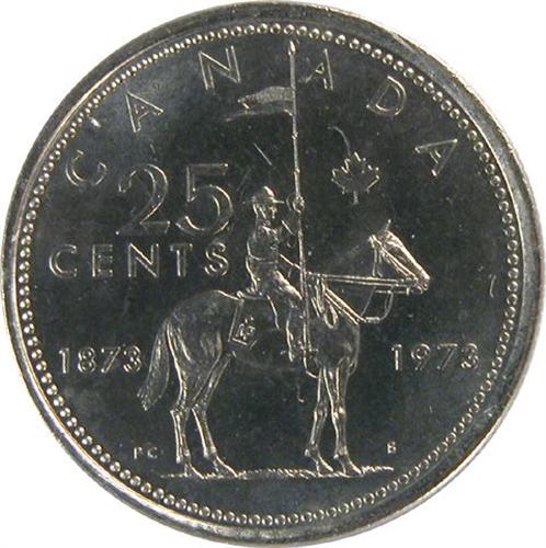 Canada Twenty-Five Cents 1973 Large Bust ICCS MS-63. Much scarcer as a mintstate business strike than it is as a Proof-Like or Specimen, this piece is tied with four others as the sixth highest of only twenty mintstate examples by ICCS