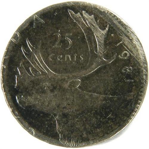 Canada Twenty-Five Cents 1981 Struck on a smaller non-magnetic dark grey coloured planchet, 2,78 grams, 20.4mm with reeding from 8:30 to 9:30 o’clock only, Uncirculated