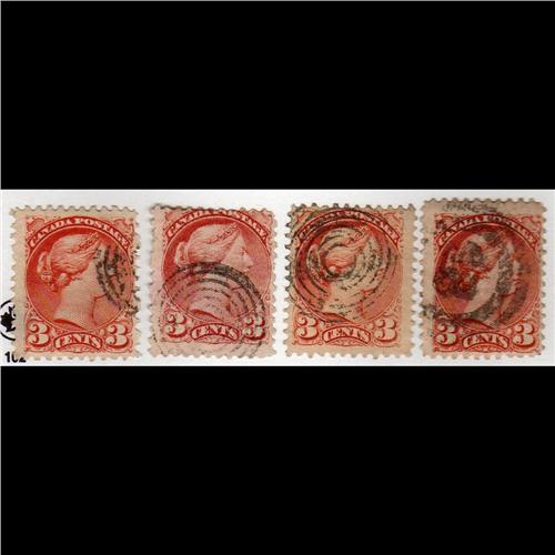 Canada #37var 4 USED PERF 11.5x12 VARIETY + COLOR SHADE<Br>*** ITEM HAS NO FAULTS ***