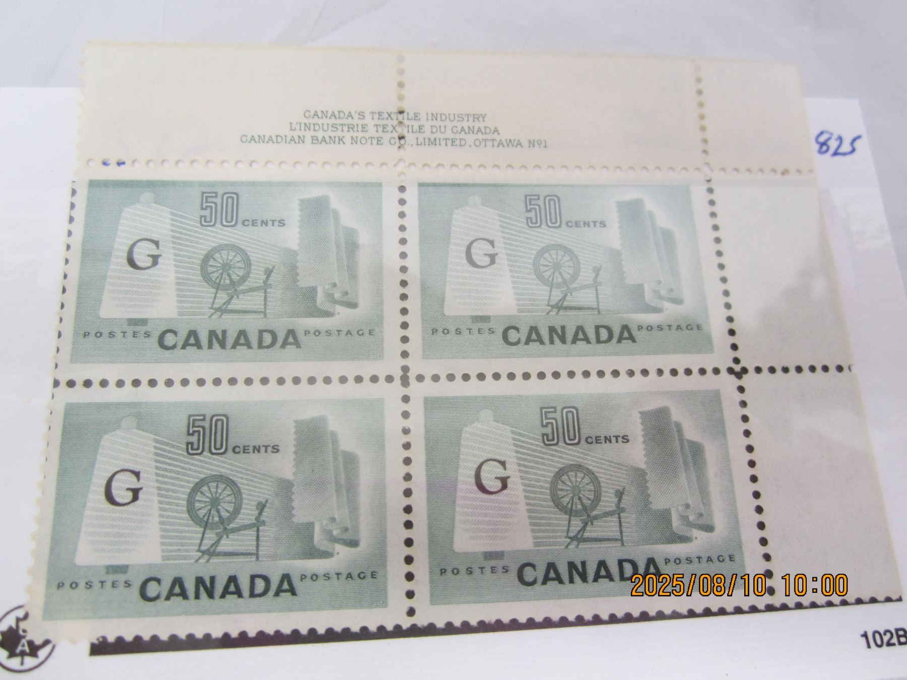 Canada 4 Fifty Cent Textile Stamps Over Printed with G