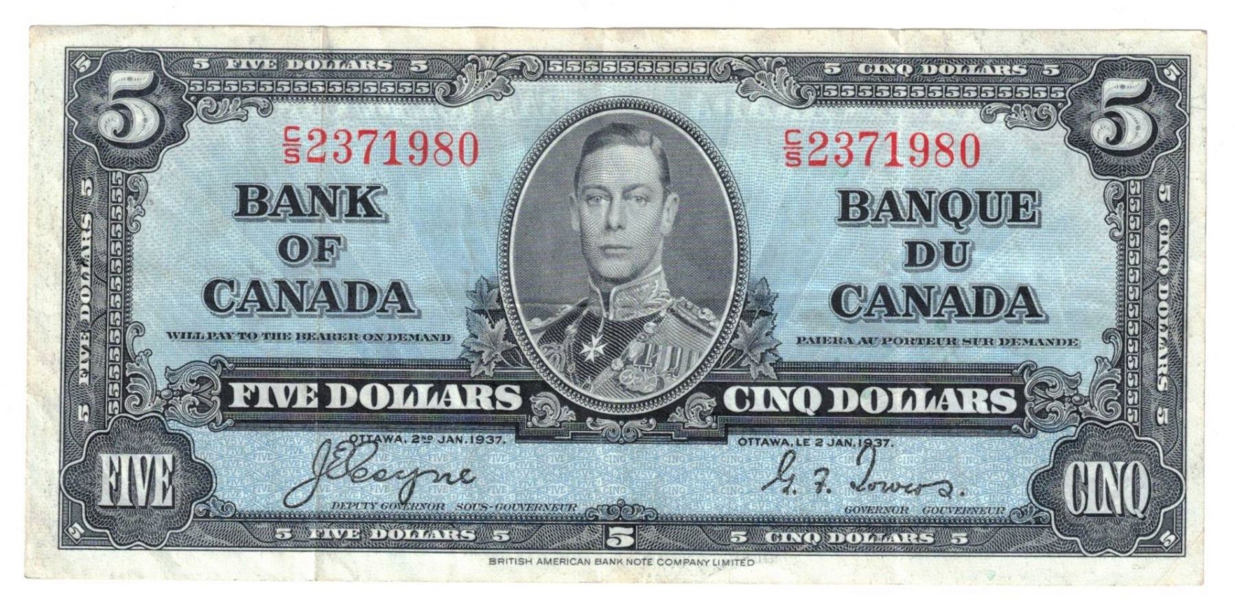 Canada, 5$ 1937 "Coyne / Towers" Crispy VF+ or Better