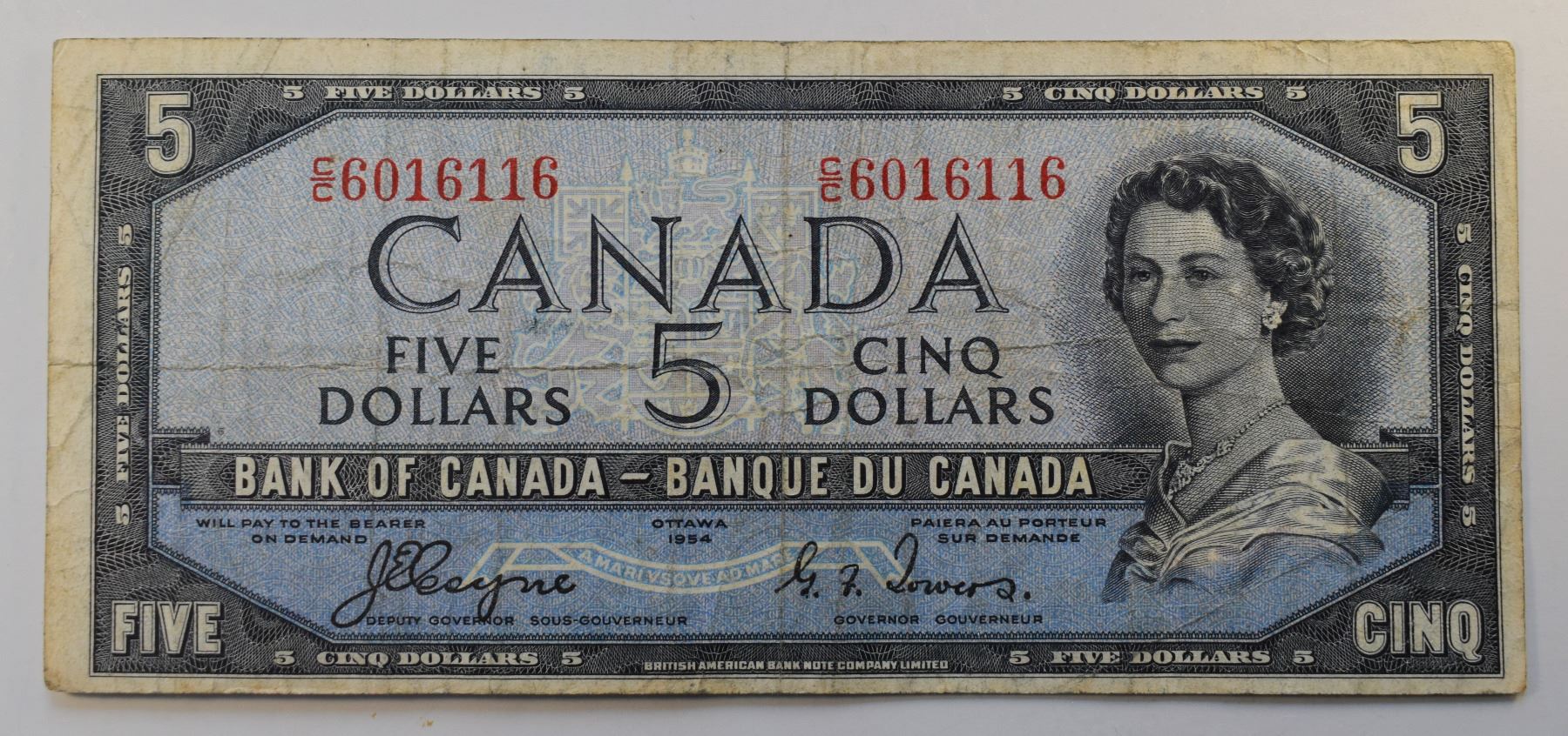 Canada, 5$ 1954 "Devil's Face" Changeover QEII BC-31a Nice F