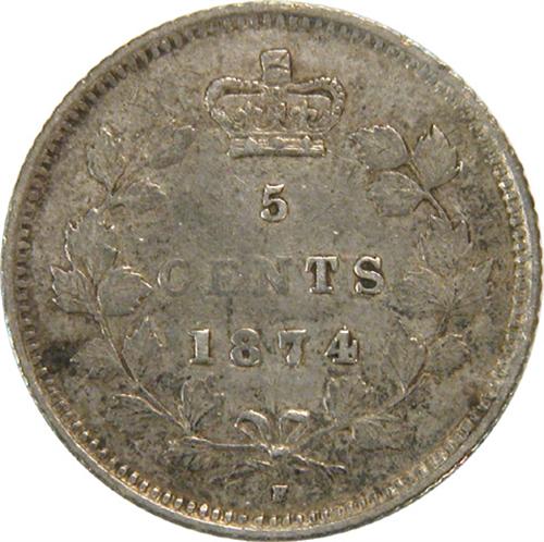 Canada 5 Cents 1874H Cr4, ICCS VF-20