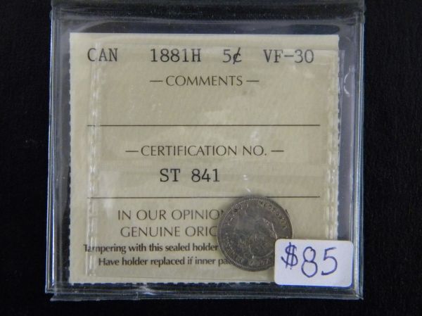 If there are no bids before the auction begins, lots will start at the reserve bid. 75% of all items in this auction will have reserve bids of 50% Canadian Coin News Trends price. Advances are at the discretion of the auctioneer. In the event of identical bids, pre-viewing bids, phone or e-mail bids will take priority. We reserve the right to withdraw any lot prior to the sale. Lots are sold to the highest bidder at timed bids indicated on our auction page through iCollector. No lots will be broken. This is not a Live Public Auction and hence there is no public forum. The auction will be conducted via the internet only, from our physical location at 230 Main Street, Fredericton, New Brunswick, E3A 1C9 on the May 18th, 2013.