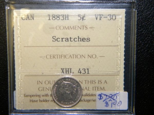 Canada - 5 Cents - 1883H - Scratch - ICCS - VF-30
