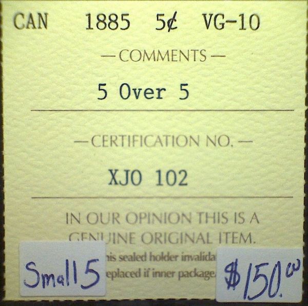 Canada - 5 Cents - 1885 - 5 Over 5; Small 5 - ICCS - VG-10