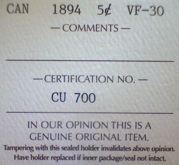 Canada - 5 Cents - 1894 - ICCS - VF-30