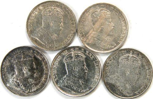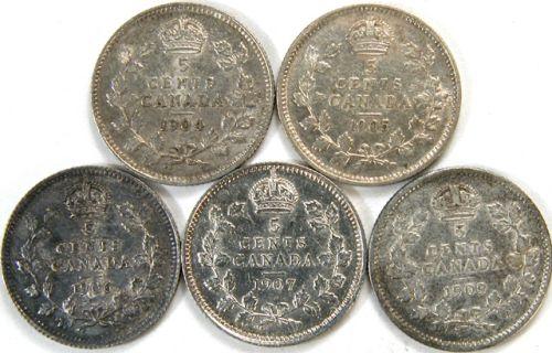Canada 5 Cents 1904, 05, 06, 07, 09 EF