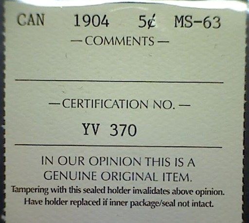 Canada - 5 Cents - 1904 - ICCS - MS-63