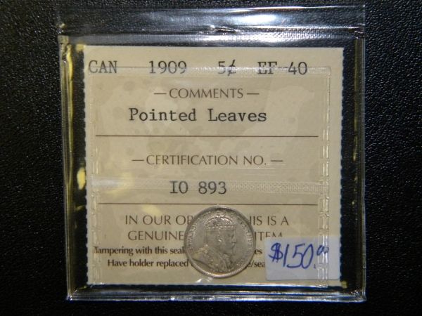Canada - 5 Cents - 1909 - Pointed Leaves - ICCS - EF-40