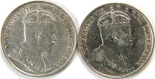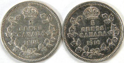 Canada 5 Cents 1909 RL and 1910 RL, EF