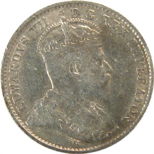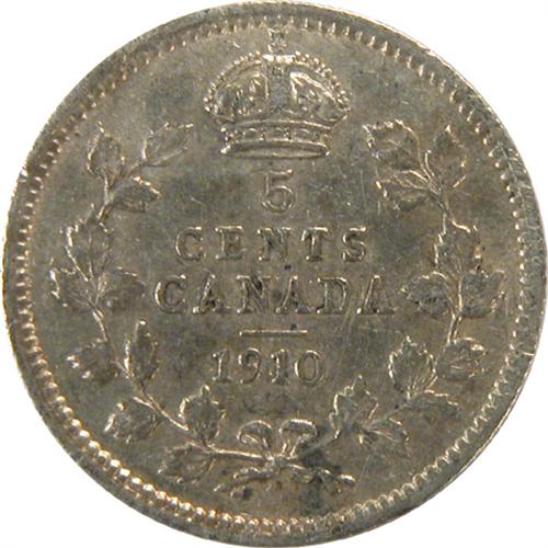 Canada Five Cents Silver 1910 Round Leaves ICCS VF-30. A lightly toned example of this tougher variety