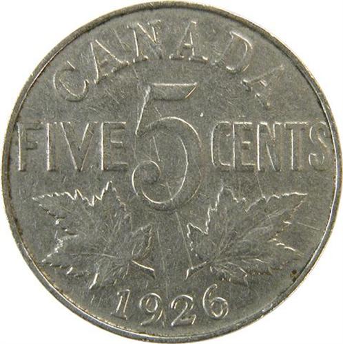 Canada Five Cents 1926 Far 6, Fine. Meter scratches