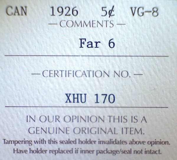 Canada - 5 Cents - 1926 - Far 6 - ICCS - VG-8