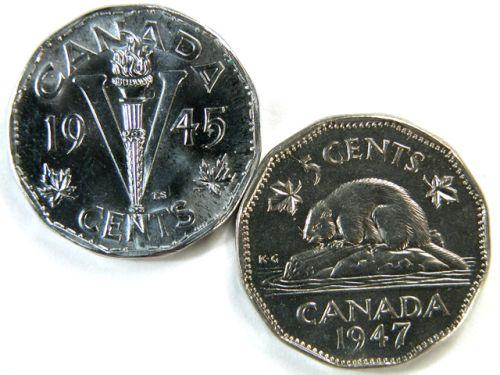 Canada Five Cents 1945 and 1947. Two pieces, both Very Choice to Gem Uncirculated