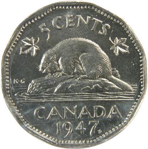 Canada 5 Cents 1947 ML, ICCS MS-65