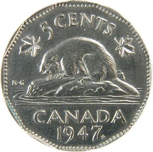 Canada Five Cents 1947 Maple Leaf PCGS SP-64. Appears to have been struck through some threads
