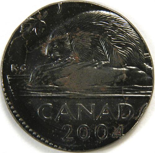 5 Cents 2004 Struck on a Smaller Planchet. About 15.7mm, magnetic, 1.3 grams, Uncirculated