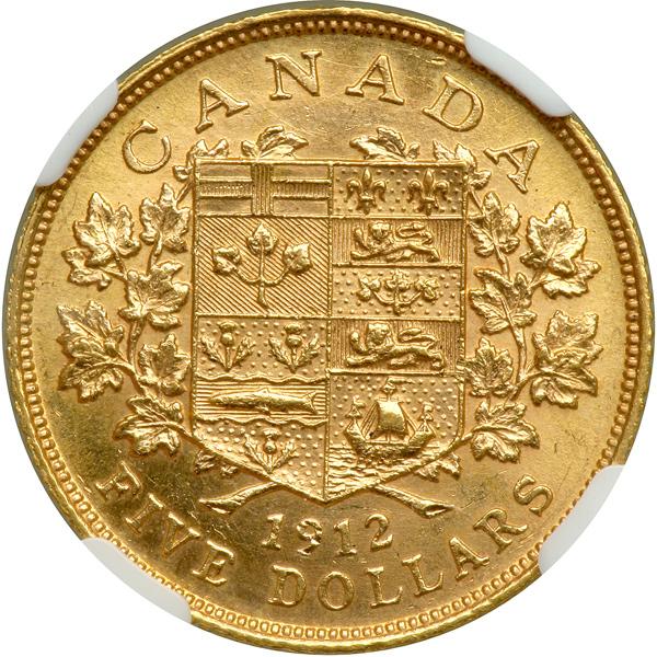 Canada. 5 Dollars, 1912. Fr-4; KM-26. George V. NGC graded MS-63.