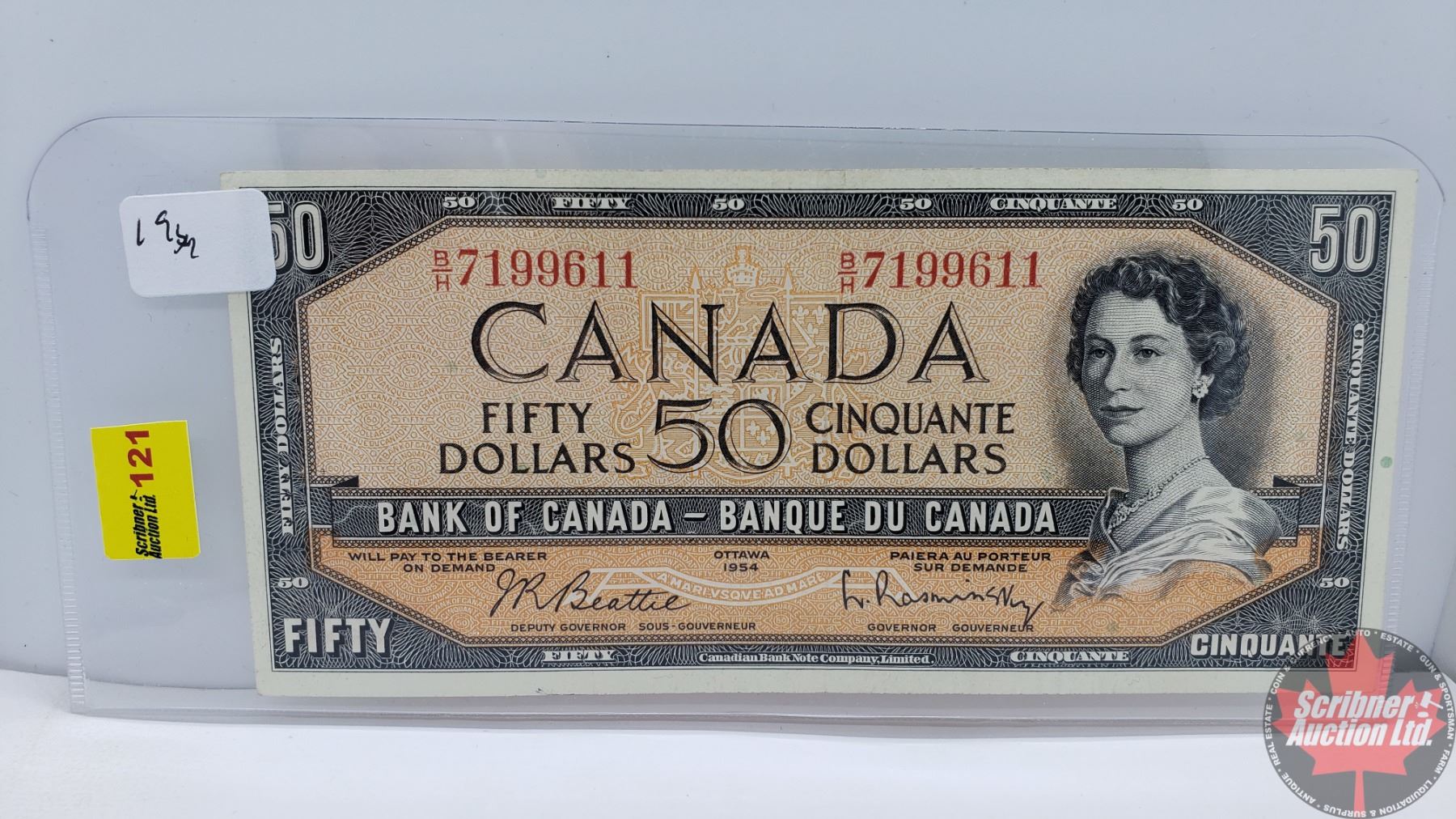 Canada $50 Bill 1954 (Beattie/Rasminsky BH7199611) (See Pics for Signatures/Serial Numbers)