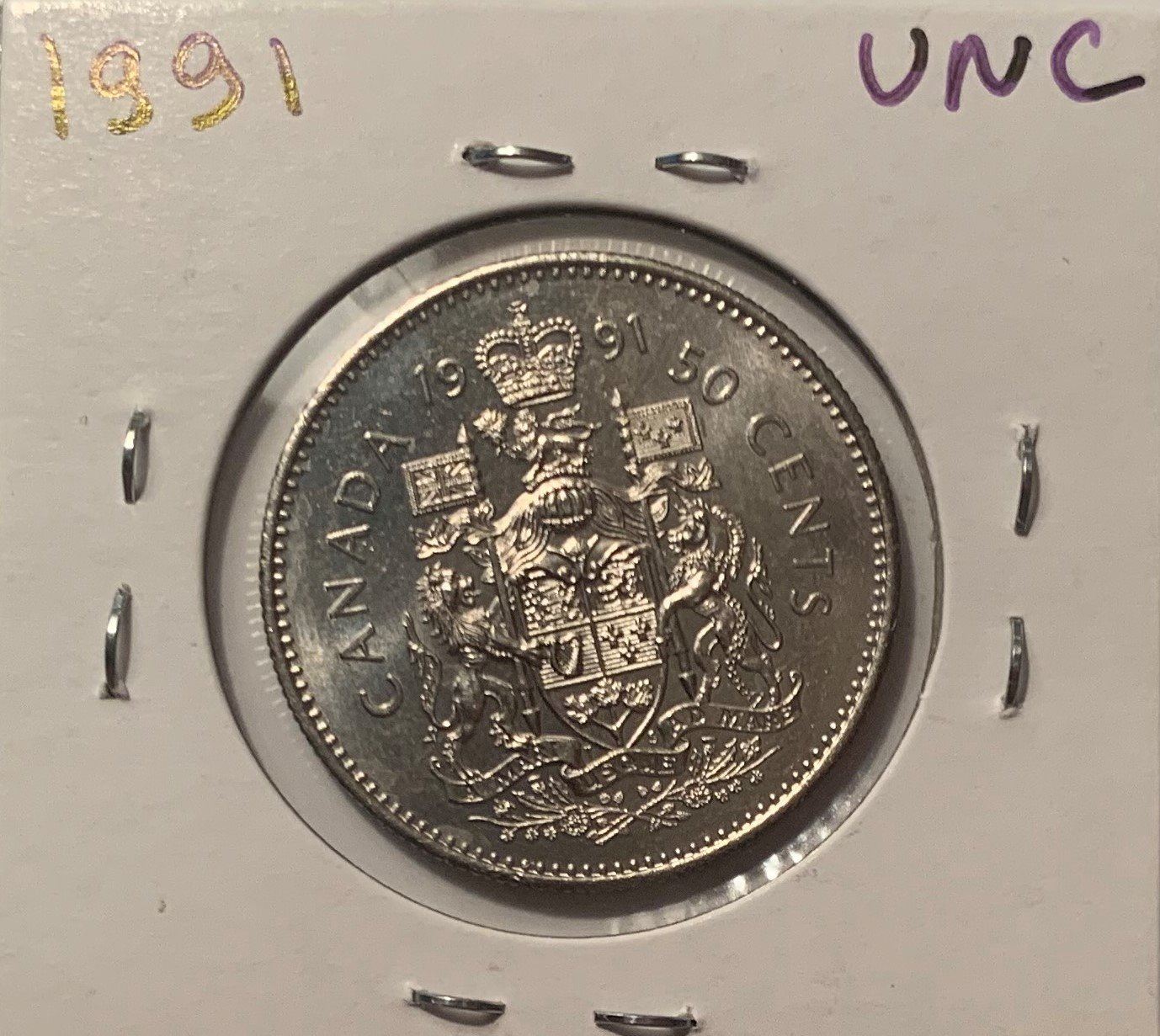 Canada 50 Cent 1991 UNC Bank of Canada 50 c Half Dollar
