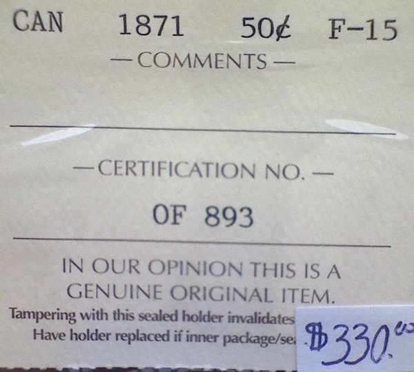 Canada - 50 Cents - 1871 - ICCS - F-15