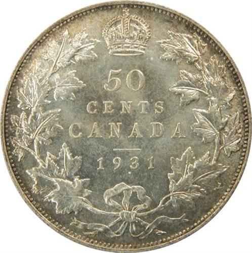 Canada Fifty Cents 1931 ICCS MS-67 PQ+. This is a fully struck piece with superbly lustrous and virtually flawless surfaces that have a wonderfully balanced light amber peripheral toning framing pale golden centres. It is accompanied by an ICCS Executive Certificate, which accords it with Superb Eye Appeal, and it is tied with one other example as the highest graded by ICCS. From the Mason Collection