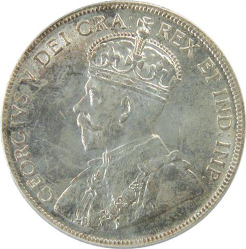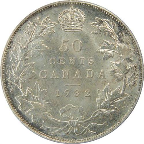 Canada Fifty Cents 1932 Norweb PCGS MS-64. This is a fully struck piece with great lustre and rather flawless surfaces that are attractively toned in pale golds with light amber accents. It is the solo highest of this tough date graded by PCGS, and is from the Norweb and the Point Grey Collections