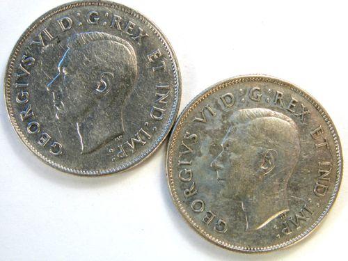 Canada 50 Cents 1947 C7 and 1947 ML, VF