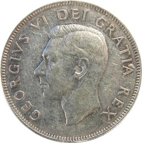Canada Fifty Cents 1948 ICCS VF-30 pale toned and 1947 Maple Leaf Straight 7, ICCS VF-20 light-medium toned