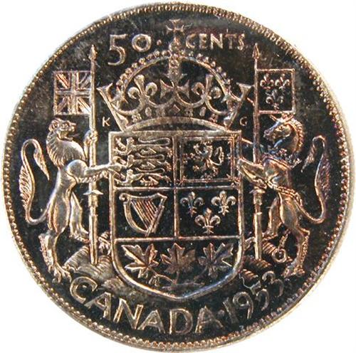 Canada Fifty Cents 1953 Small Date ICCS MS-63 Ultra Heavy Cameo. Wonderful medium-dark toning