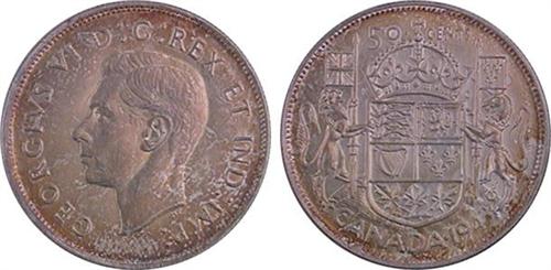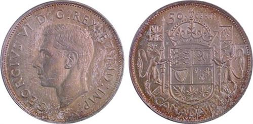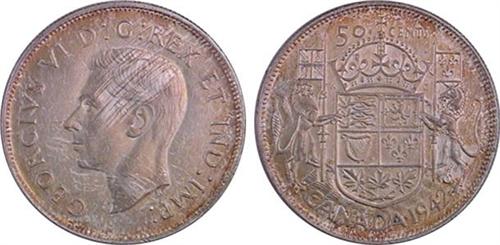 Canada 50¢(qtt4) 1941 MS60 + 1942 MS60 + 1943 MS60 + 1944 MS60