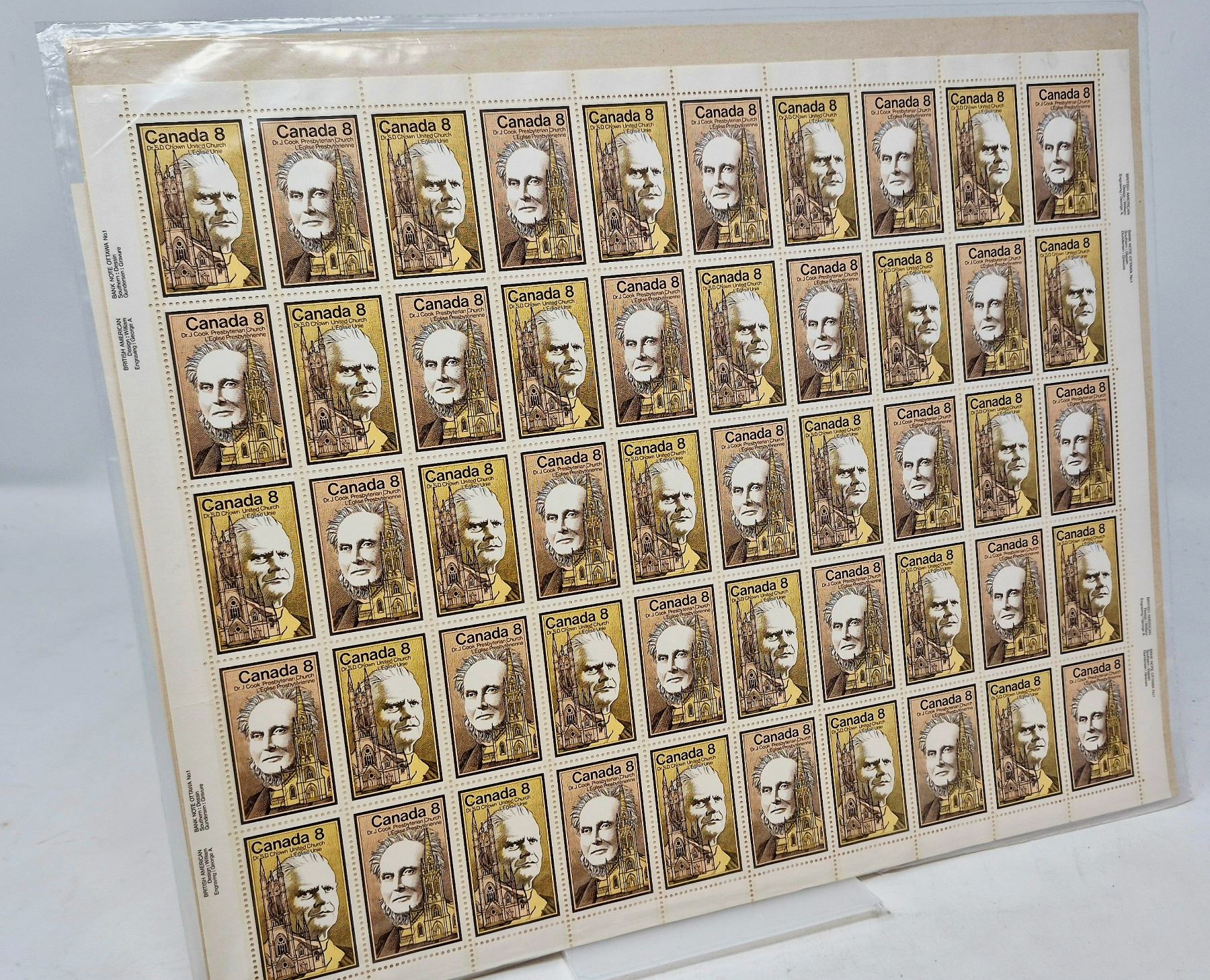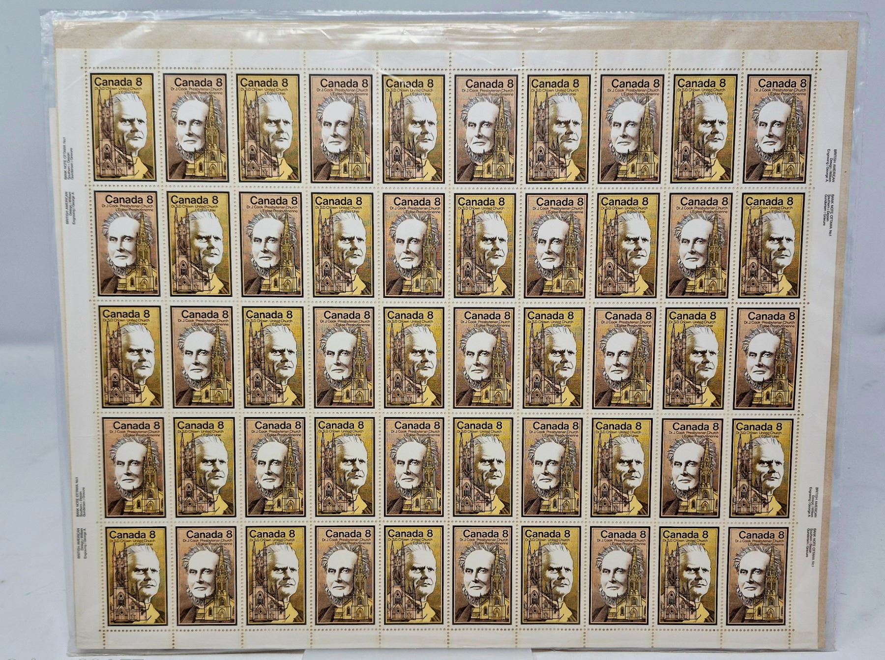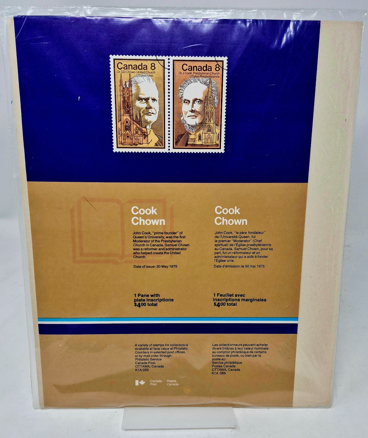 Full mint sheet of 50 stamps featuring John Cook and Samuel Chown, influential religious figures in Canada’s Presbyterian and United Church history. Issued May 30, 1975, includes original descriptive backing. Great for philatelists and Canadian history collectors.