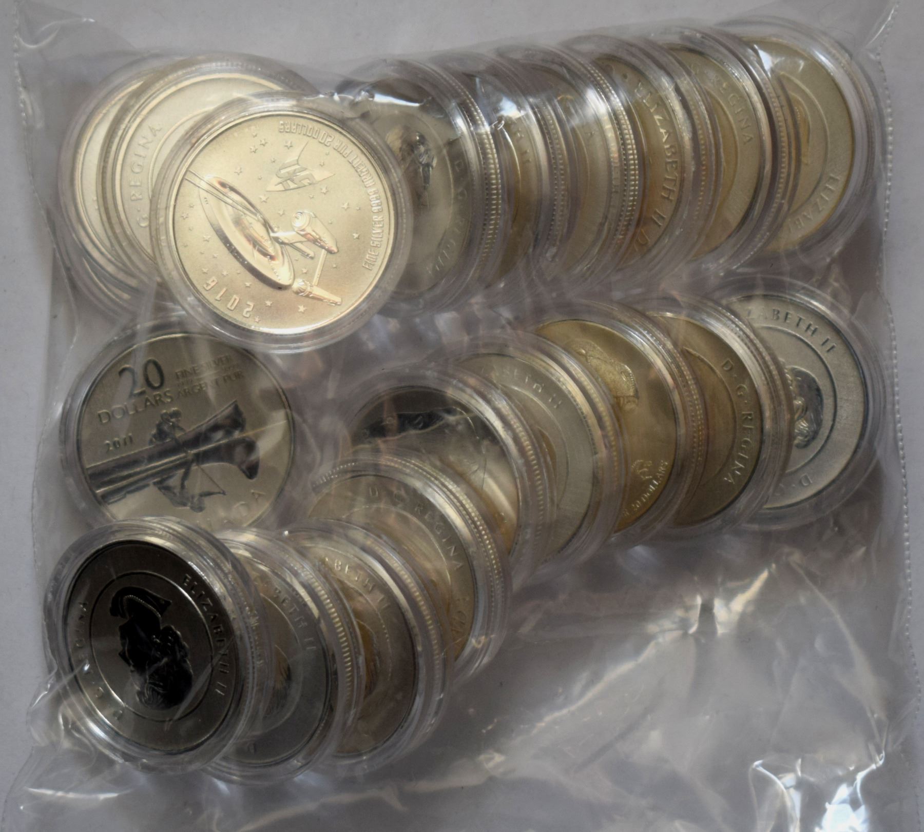 Canada Assorted Groupe of 19 different coins of $20 for $20 2011-16 + $25 for $25 Flag Colored $405 Face value (20)