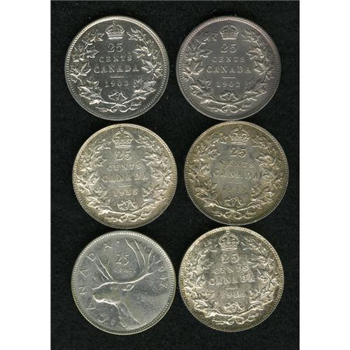 Canada: Assortment of 25 Cents, 1902H cleaned XF